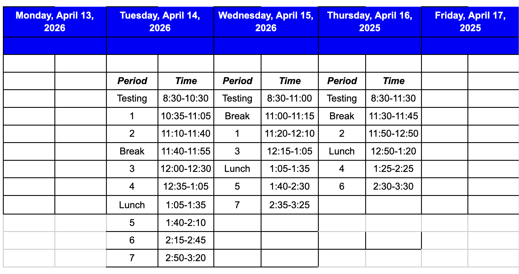Bell Schedule